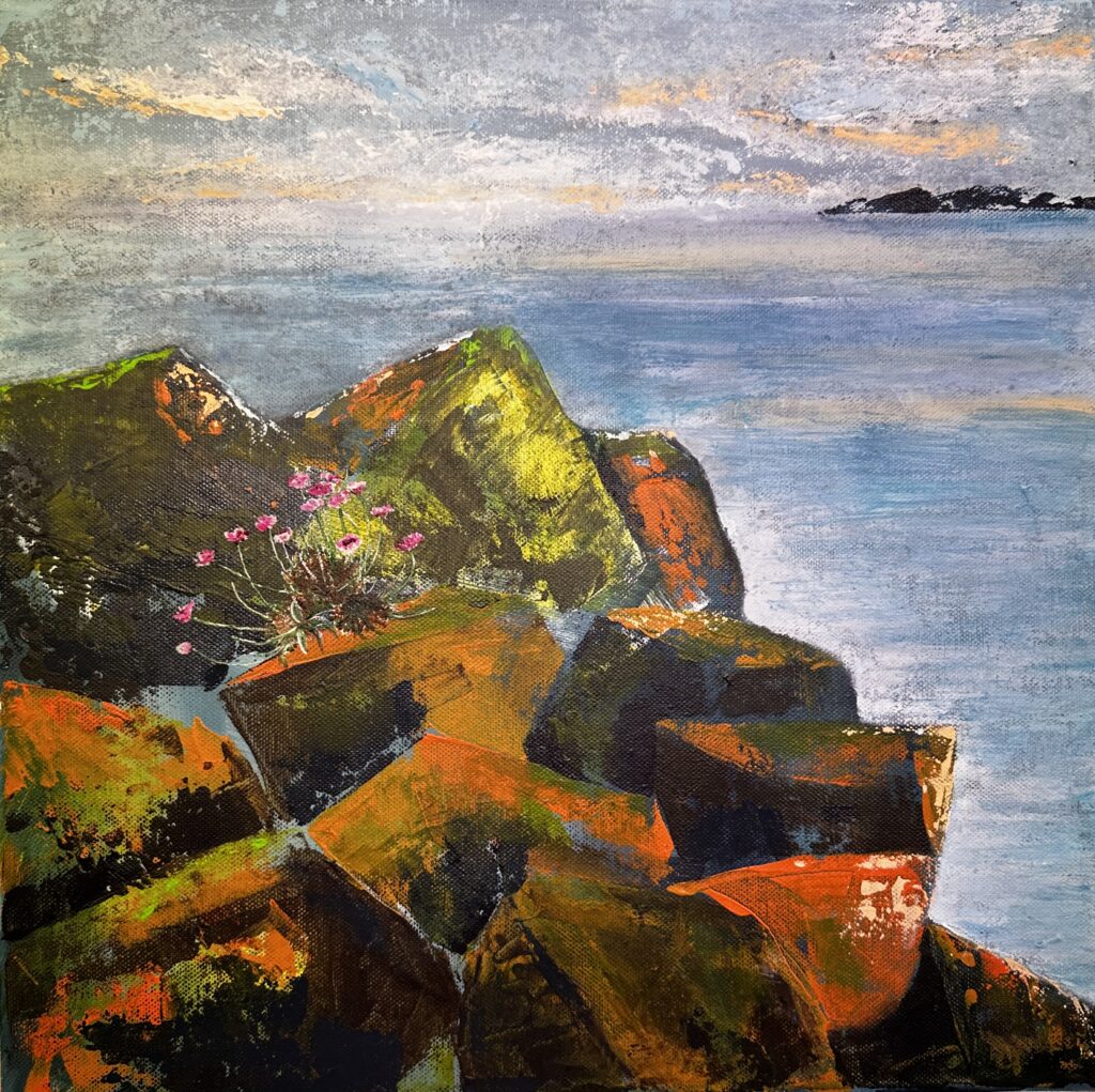 En studio av stenarnas tyng och robusta formationer i naturen. Jag återger dess former och min känsla av deras färger.